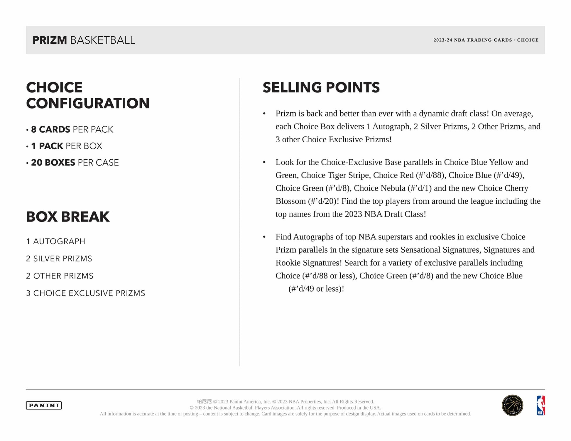 2023-24 Panini Prizm Choice NBA Basketball Cards PRODUCT HIGHLIGHTS: