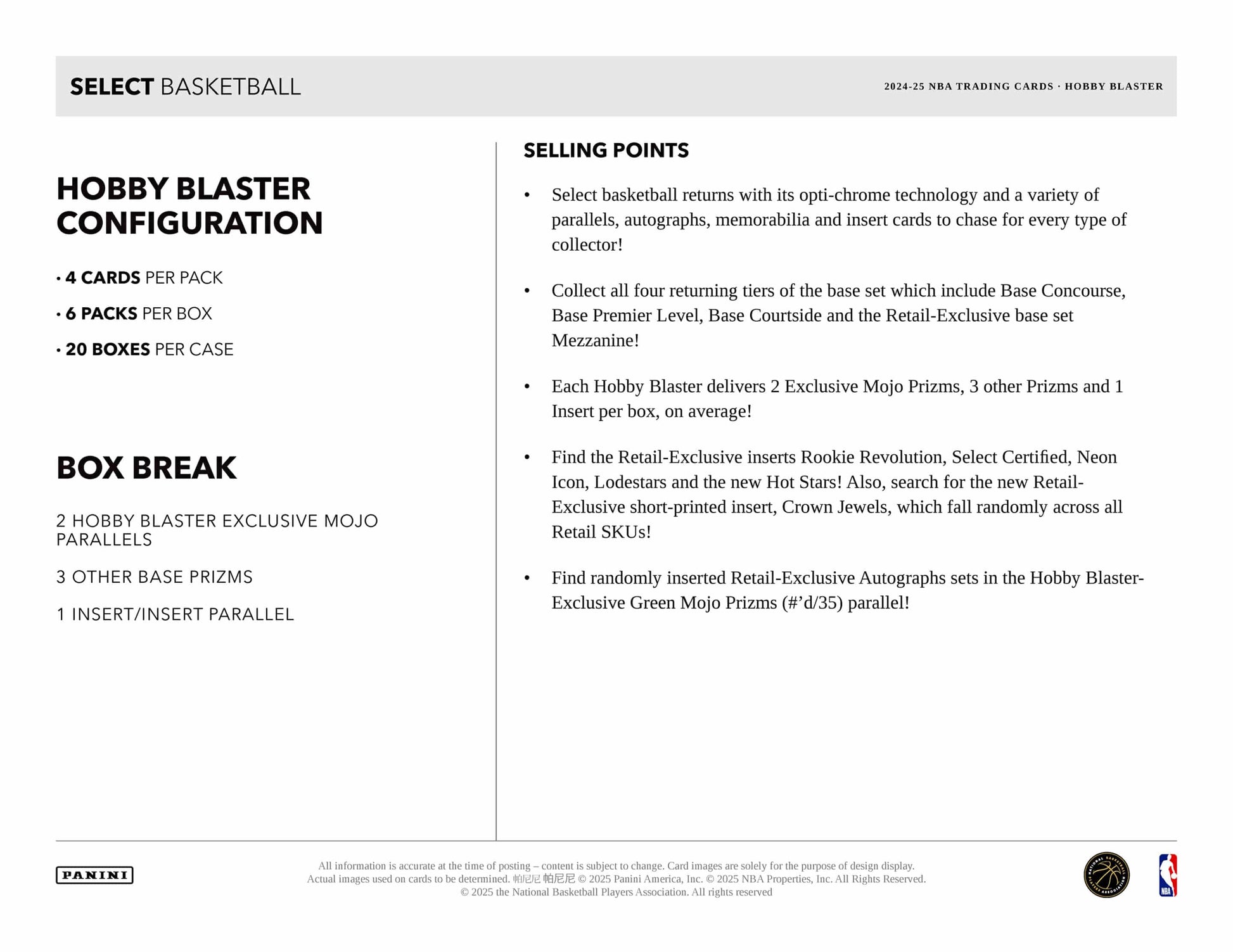 2024-25 Panini Select NBA Basketball Cards Hobby Blaster PRODUCT HIGHLIGHTS: