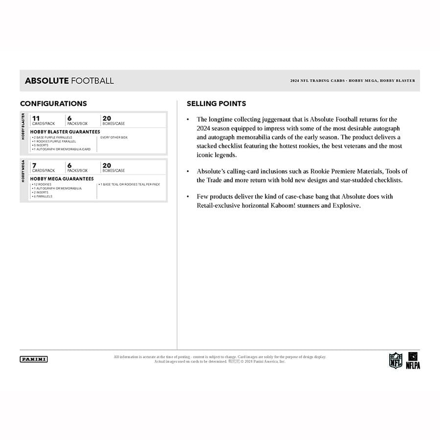 2024 Panini Absolute NFL Football Cards Hobby Mega PRODUCT HIGHLIGHTS: