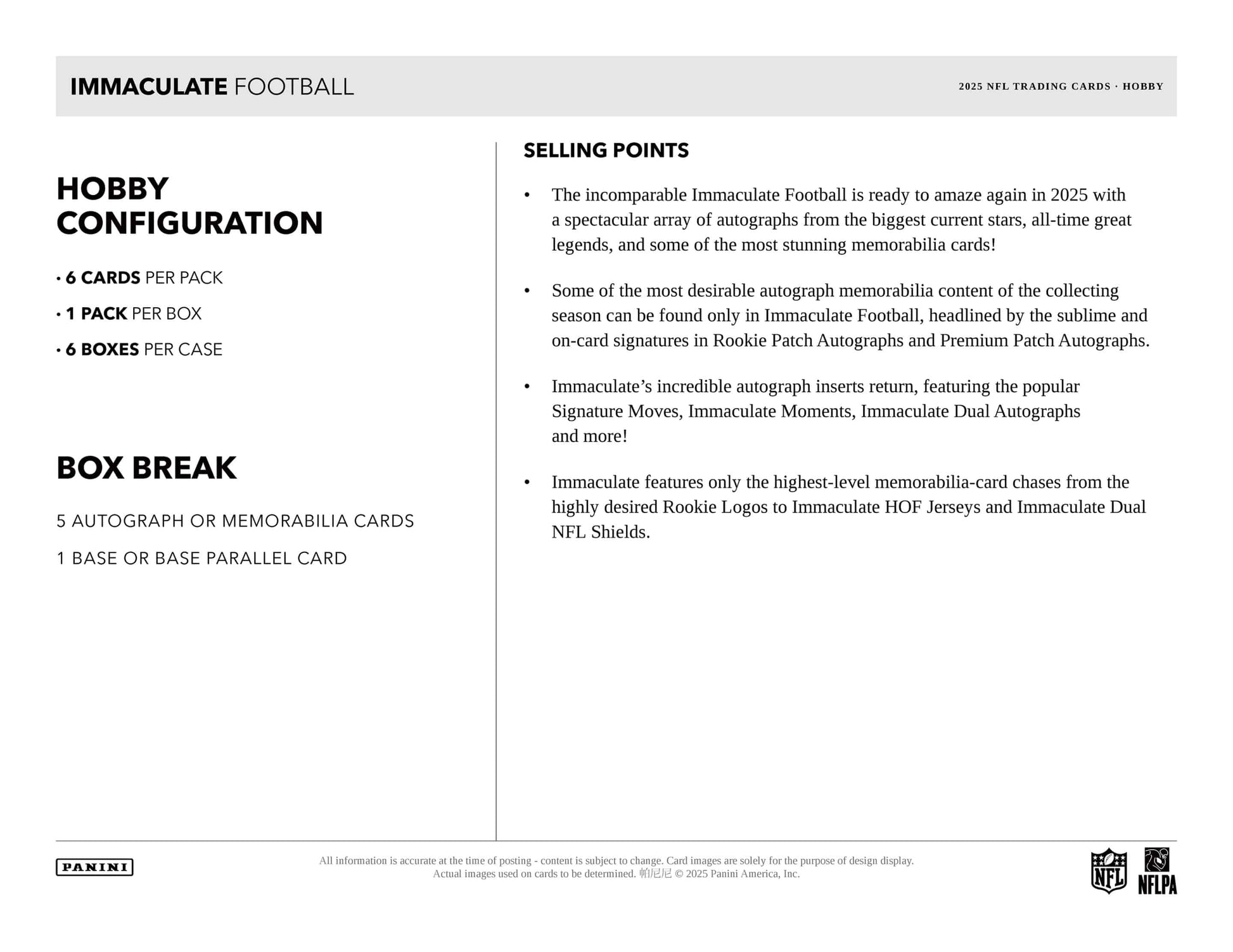2025 Panini Immaculate NFL Football PRODUCT Highlights: