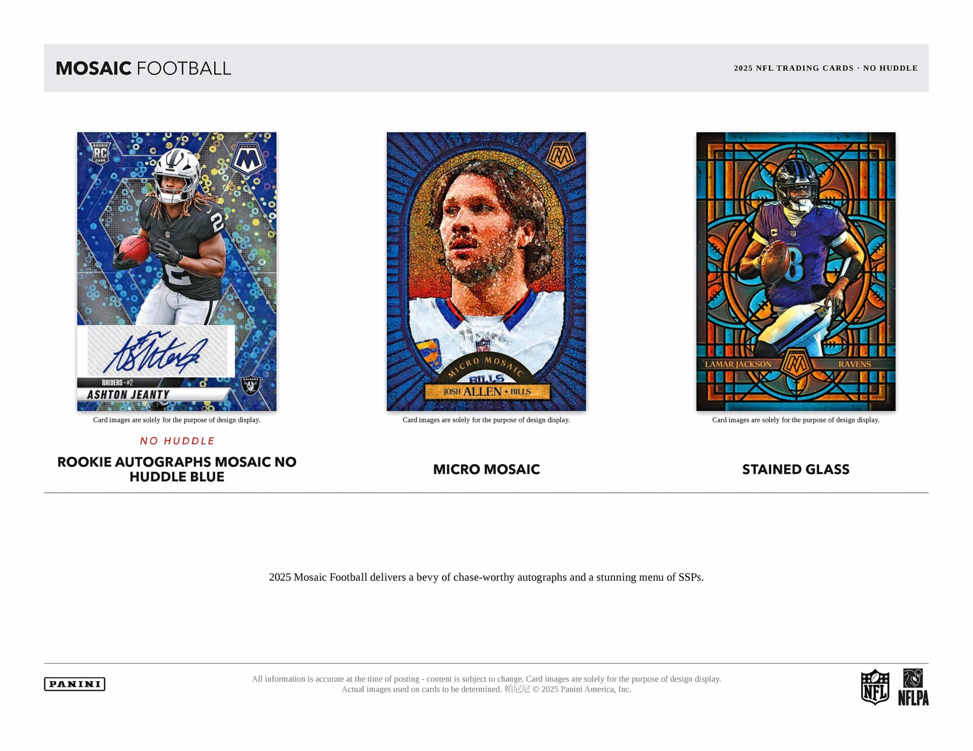 2025 Panini Mosaic No Huddle NFL Football PRODUCT HIGHLIGHTS: